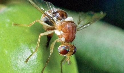 Bactrocera oleae, la mosca del olivo, es la plaga más devastadora de este cultivo a nivel mundial. Ataca exclusivamente al olivo, donde la hembra perfora la piel de la aceituna para depositar un huevo. La larva se desarrolla alimentándose de la pulpa, provocando la caída prematura del fruto, una drástica reducción del rendimiento en aceite y una severa degradación de su calidad (aumento de acidez, peroxidación).